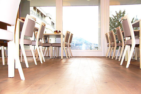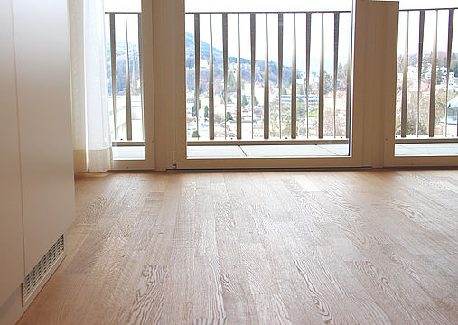 Tilo 1-Stab Parkett Landhausdiele Eiche Melange Alpin, gebürstet vital Naturöl-finish. Nutzschicht ca. 3.3 mm, ohne Fase, thermobehandelt, Click Fix-Verbindung. Dreischichtiger Aufbau (Nadelholz-Träger), Format: 2'205 x 176 mm