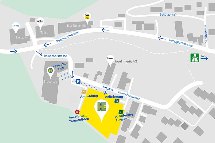 Für LKWs steht der LKW Warteplatz zur Verfügung.